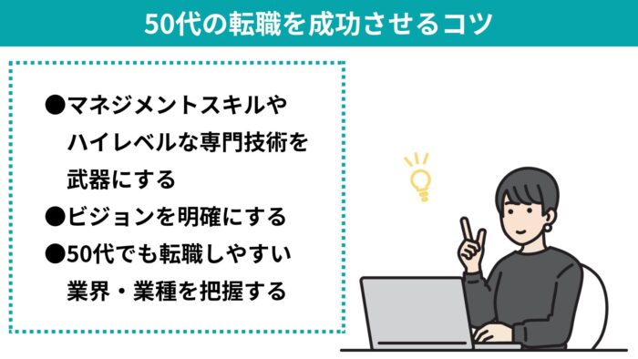 企業側も50代に対して、高いスキルや実績を要求するため、自分の市場価値をしっかりと把握し、現実的な目標を設定することが重要です。